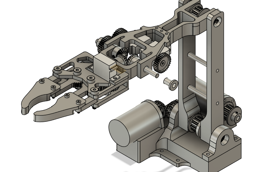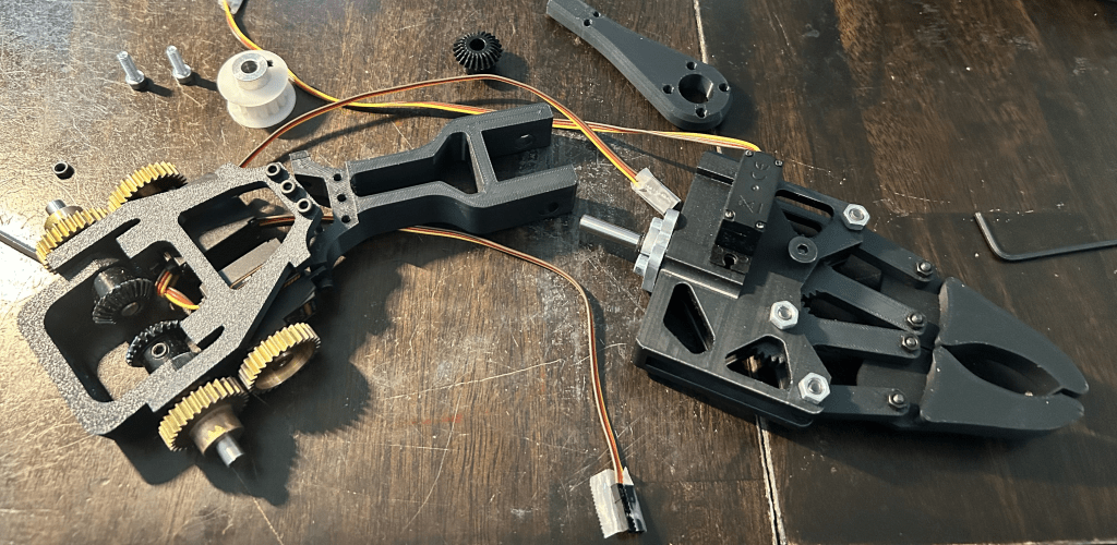 I used Gobilda for the wrist gears and bevel gears because printing it out would be very difficult with the consideration of threads for set screws.