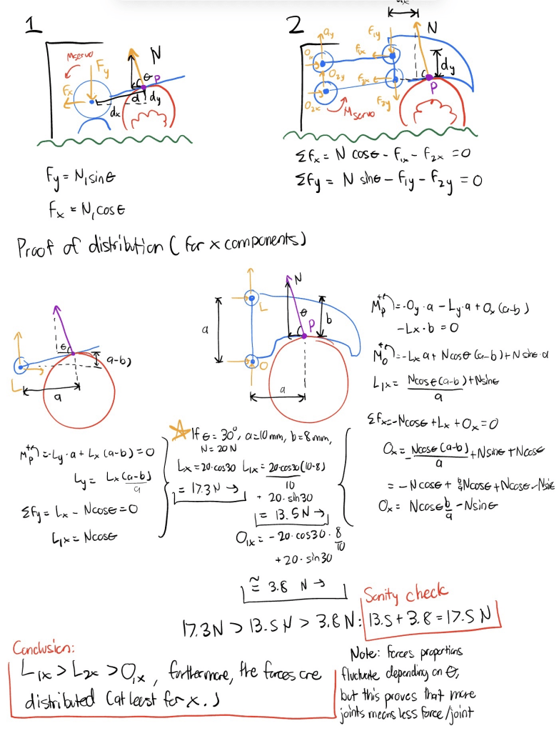 Idea -Create a linkage mechanism within each finger that distributes normal force N from 2 fingers to 4 bars so…